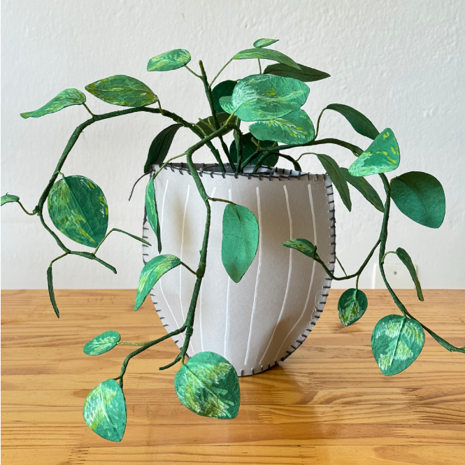 Com seu caimento leve e orgânico, a jiboia de papel traz movimento e vida para qualquer cantinho. Os galhos se estendem de forma solta, criando uma composição fluida que lembra a natureza crescendo livre, com folhas em diferentes tons de verde e nuances pintadas à mão.