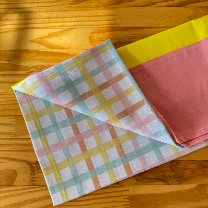 Leve cor e alegria à sua mesa com nossa toalha de quadriculada com barrado colorido, feita com todo o cuidado que uma celebração especial merece. ✨