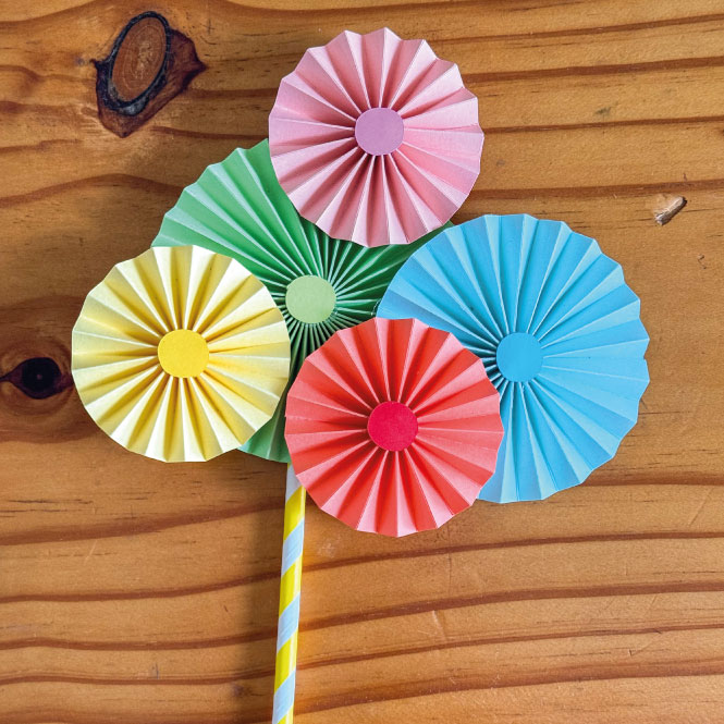 O Topo de Bolo Roseta é feito artesanalmente com papel colorido e muito cuidado. Cada roseta é dobrada e montada à mão, criando um efeito delicado e festivo — como pequenas flores de papel que se abrem sobre a mesa.