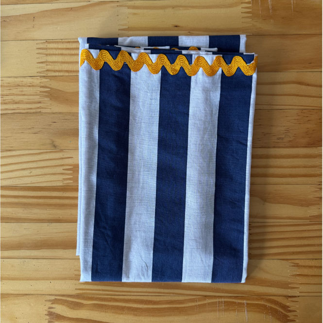 Nosso trilho de mesa de tricoline é feito à mão com todo o cuidado e carinho, trazendo a leveza do algodão natural e o charme das cores da Azul Céu.